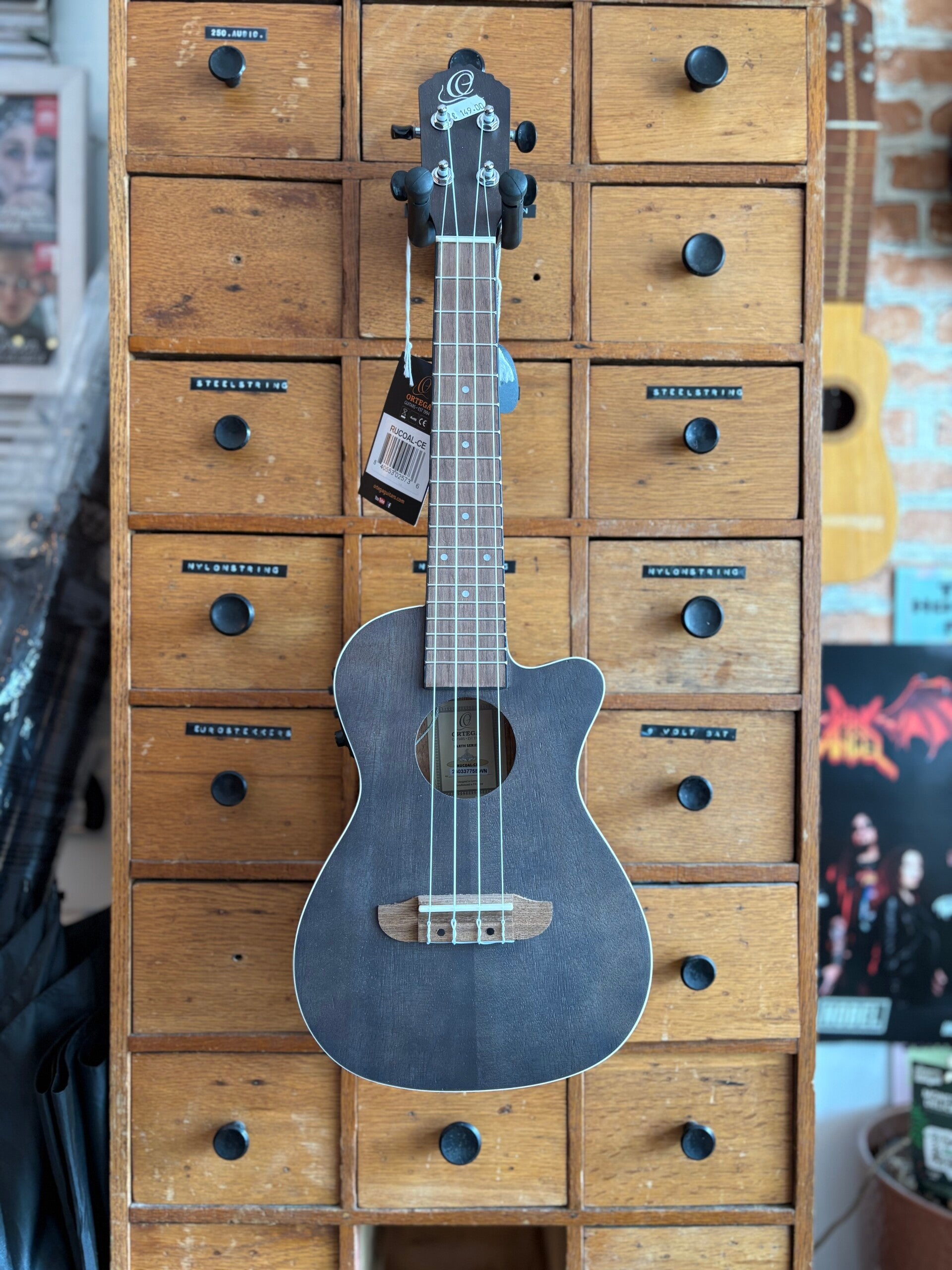 ORTEGA Earth Series Concert Preamp Ukulele Okoume Coal Black
