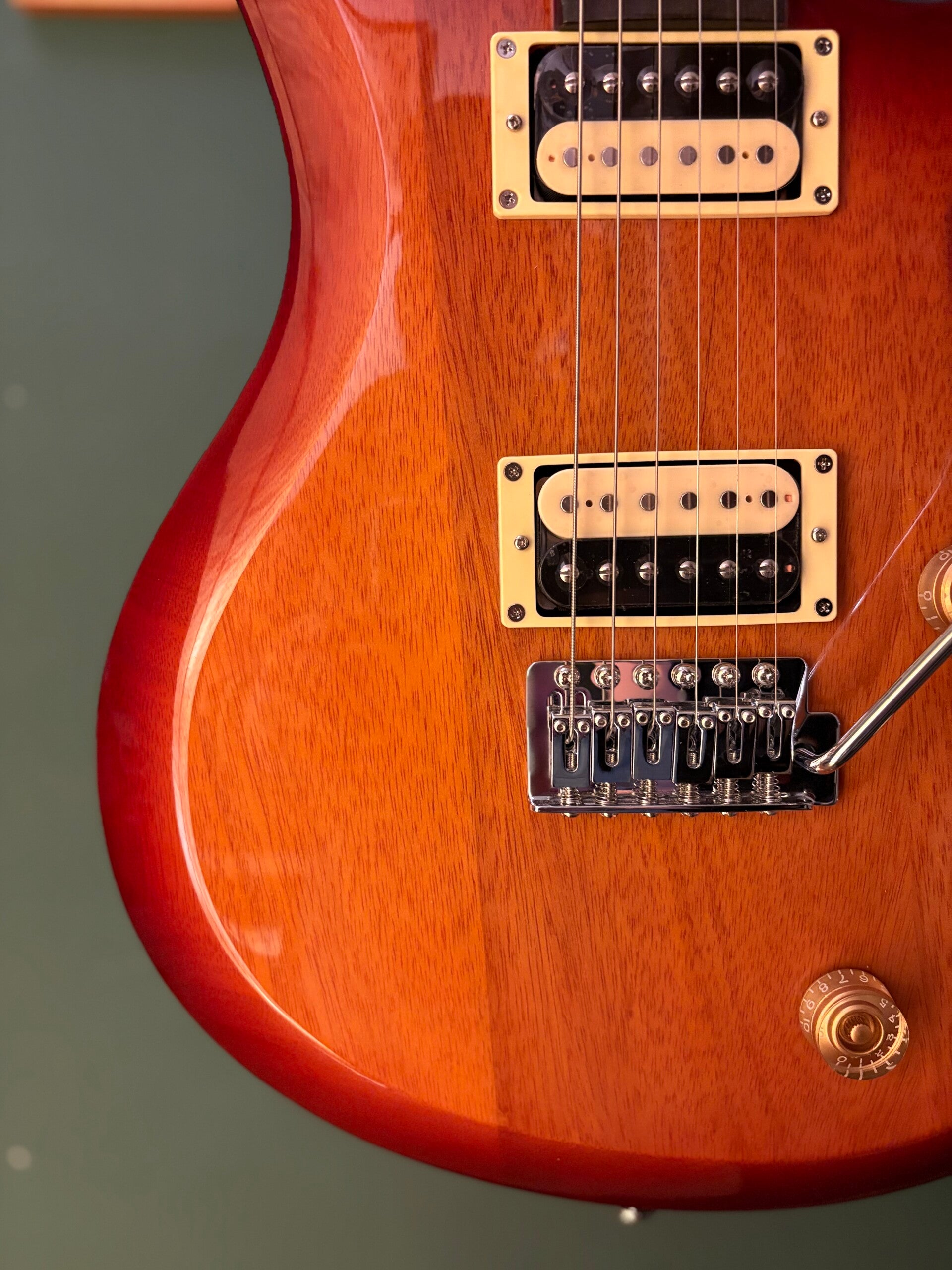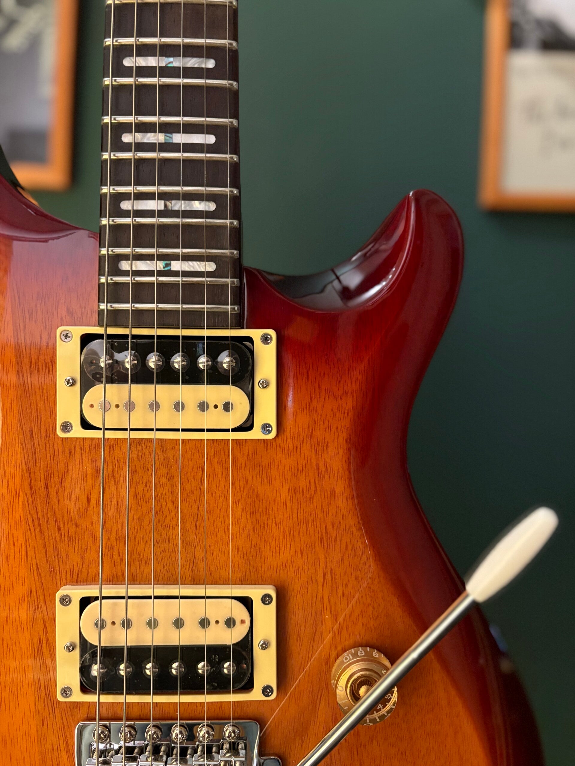 Equipped with a 3-way lever switch, volume, and tone controls with a push/pull coil-split function, this setup allows players to effortlessly switch between full humbucker power and single-coil brightness, providing a wide range of tonal options to suit any style.