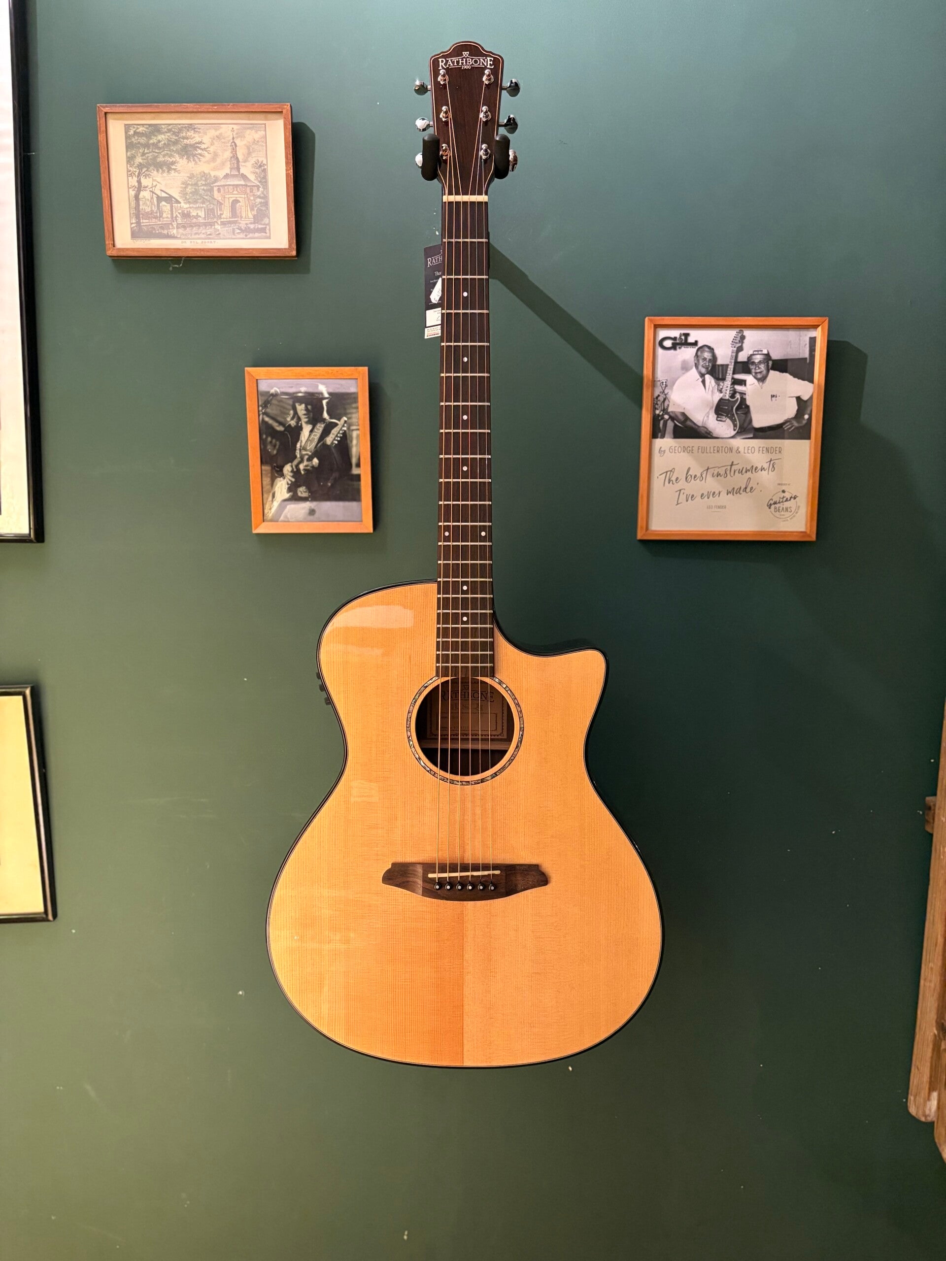 The perfect all-rounder, the No.3 has the same scale length as the Orchestra Model but body dimensions closer to a classic dreadnought. The larger body cavity naturally produces greater bass tones, but without sacrificing clarity, and that's the beauty of the Grand-Auditorium. However, a larger body does not mean an unwieldy instrument. Far from it, in fact. The beautiful curves around the waist of the Rathbone No.3 ensure the guitar will sit comfortably on a knee or hang perfectly from your shoulders.