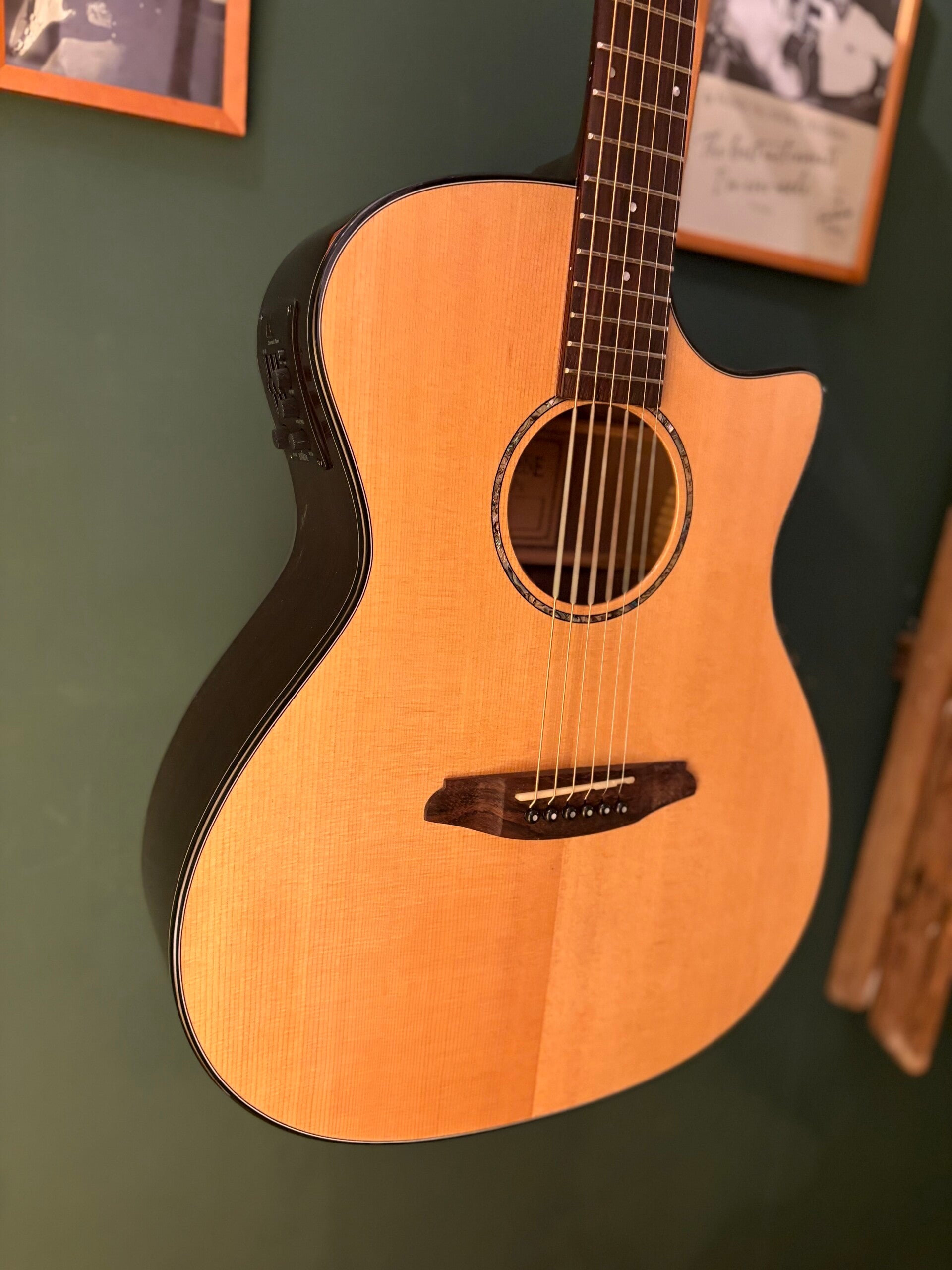A fingerstyle dream, the R3SRCE combines Solid Spruce on the top with Rosewood on the back and sides. This classic pairing delivers perhaps the most sought after tone in the guitar world: Lots of low end, lots of brilliant high-end with a little scoop in the middle. Rosewood also helps naturally create resonant and harmonic overtones which allow every note to be fully articulated.